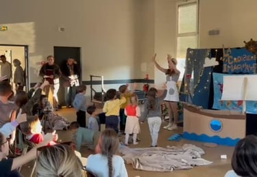 -Le spectacle est hyper interactif! Les enfants interagissent avec moi, miment, font les bruitages et participent aux aventures. Ils font eux meme avancer l'histoire!